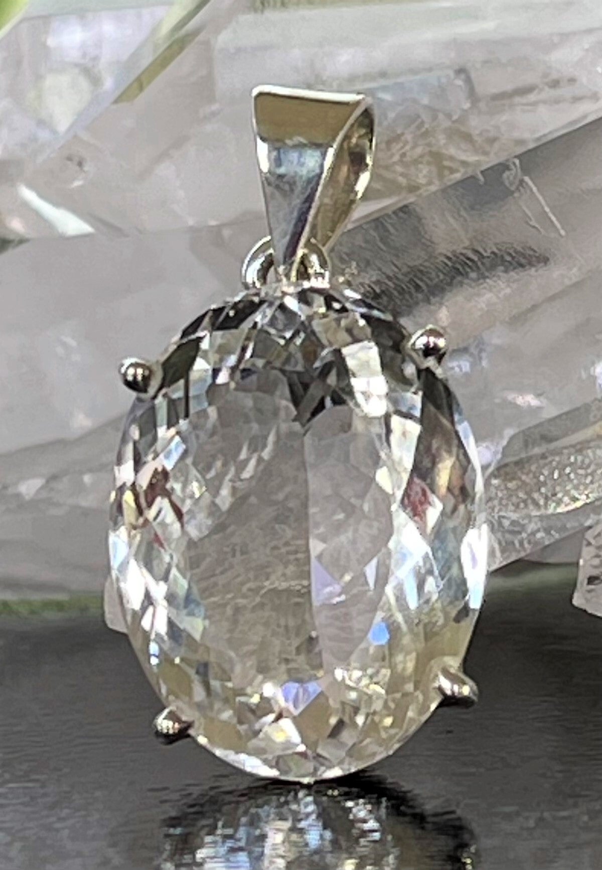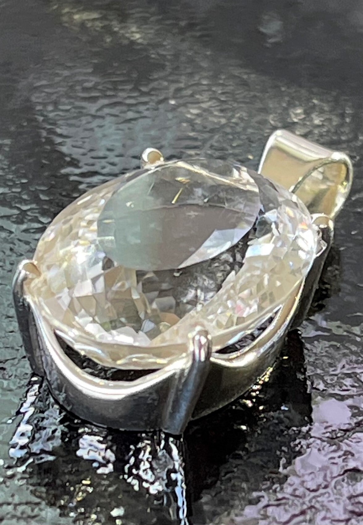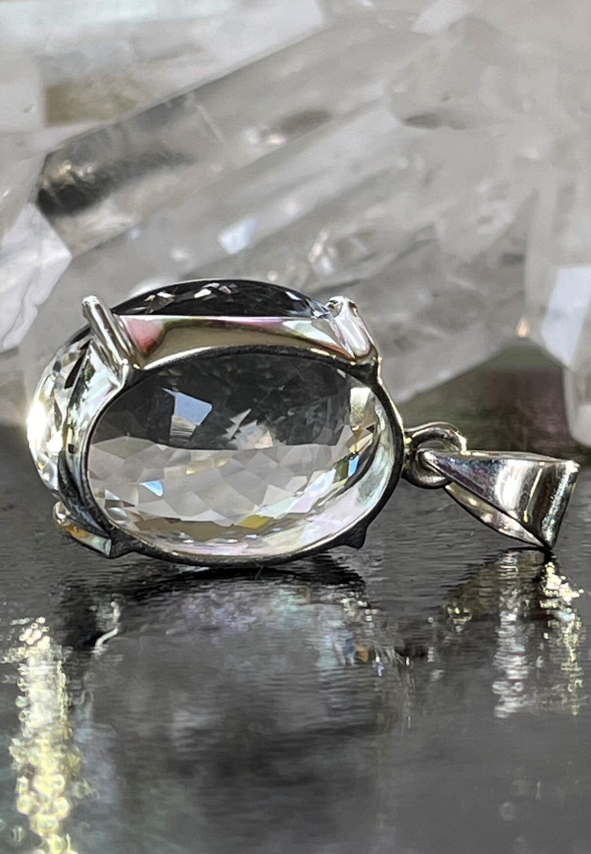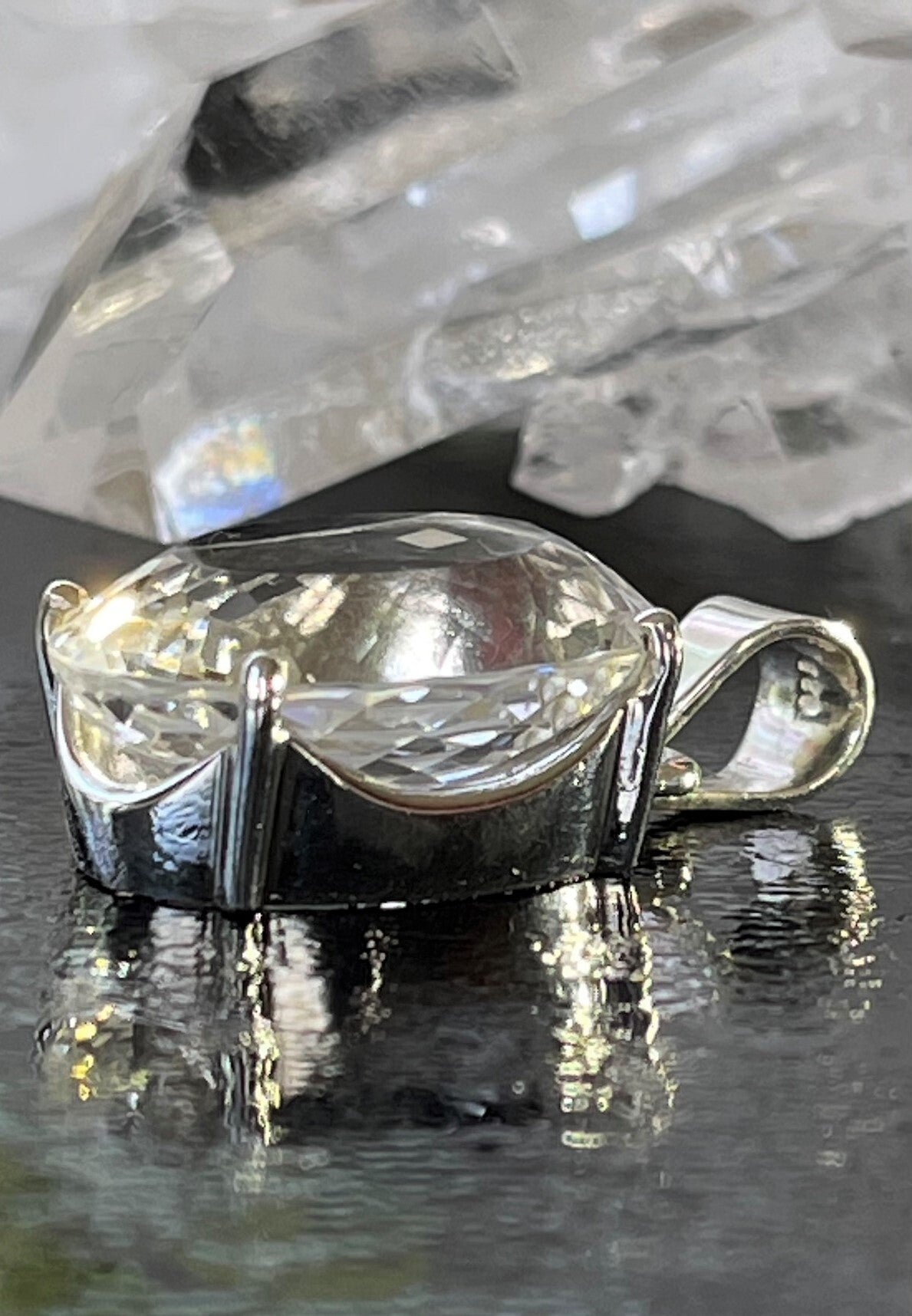 Zilveren hangertje met Bergkristal edelsteen facet geslepen ovaal, medium