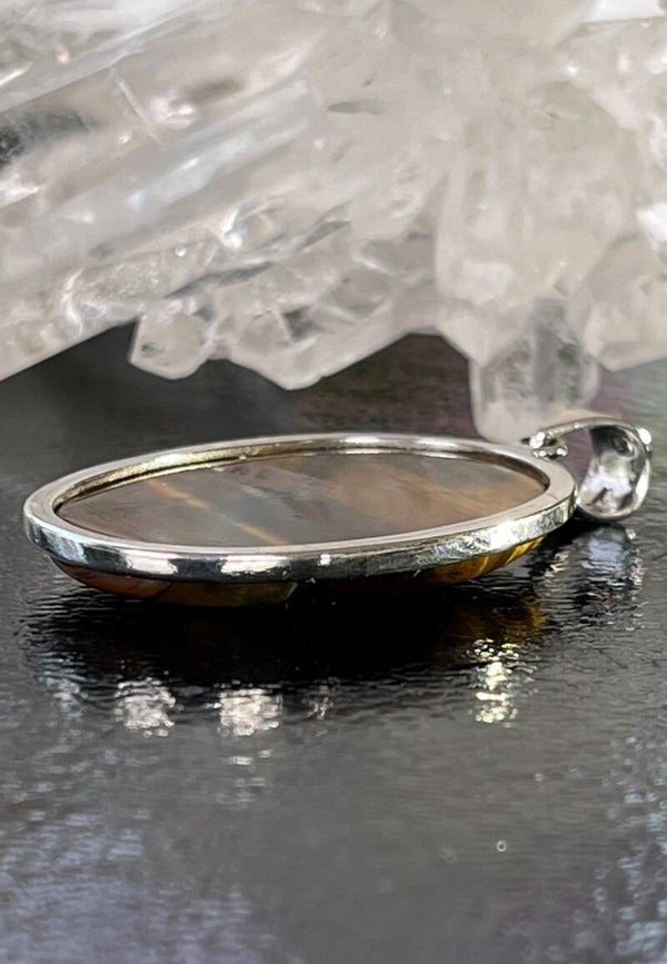 Zilveren hangertje met Tijgeroog edelsteen cabochon ovaal, medium