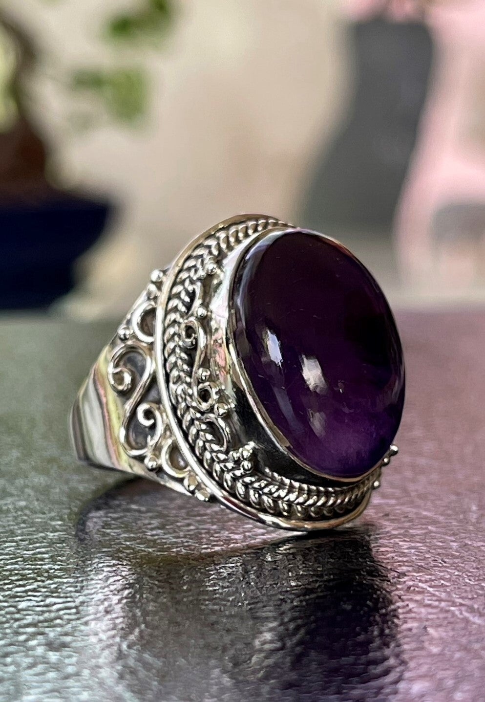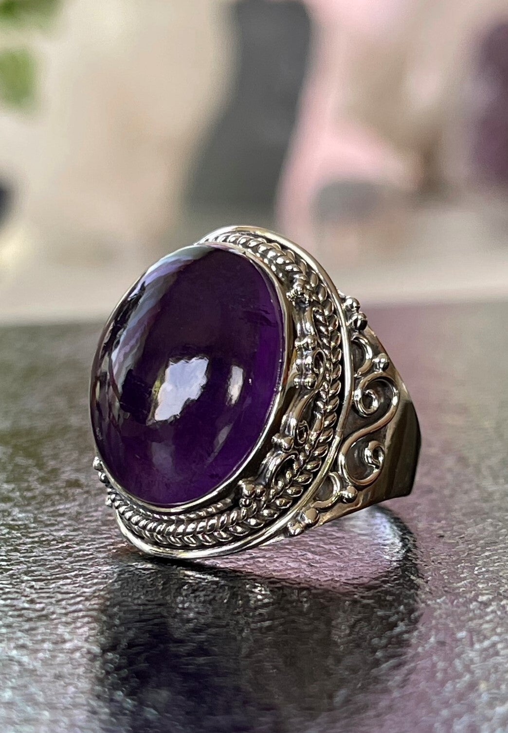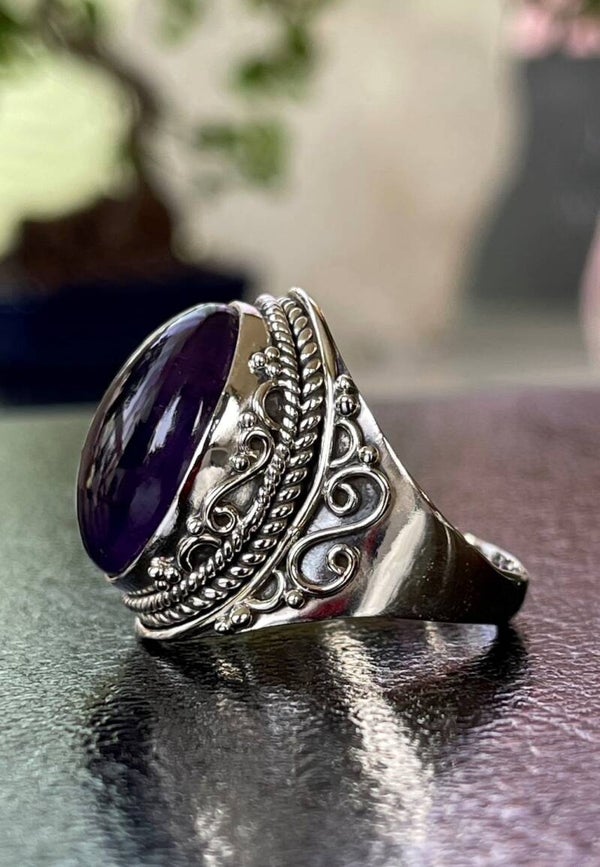 Zilveren ring met Amethist edelsteen cabochon ovaal, groot