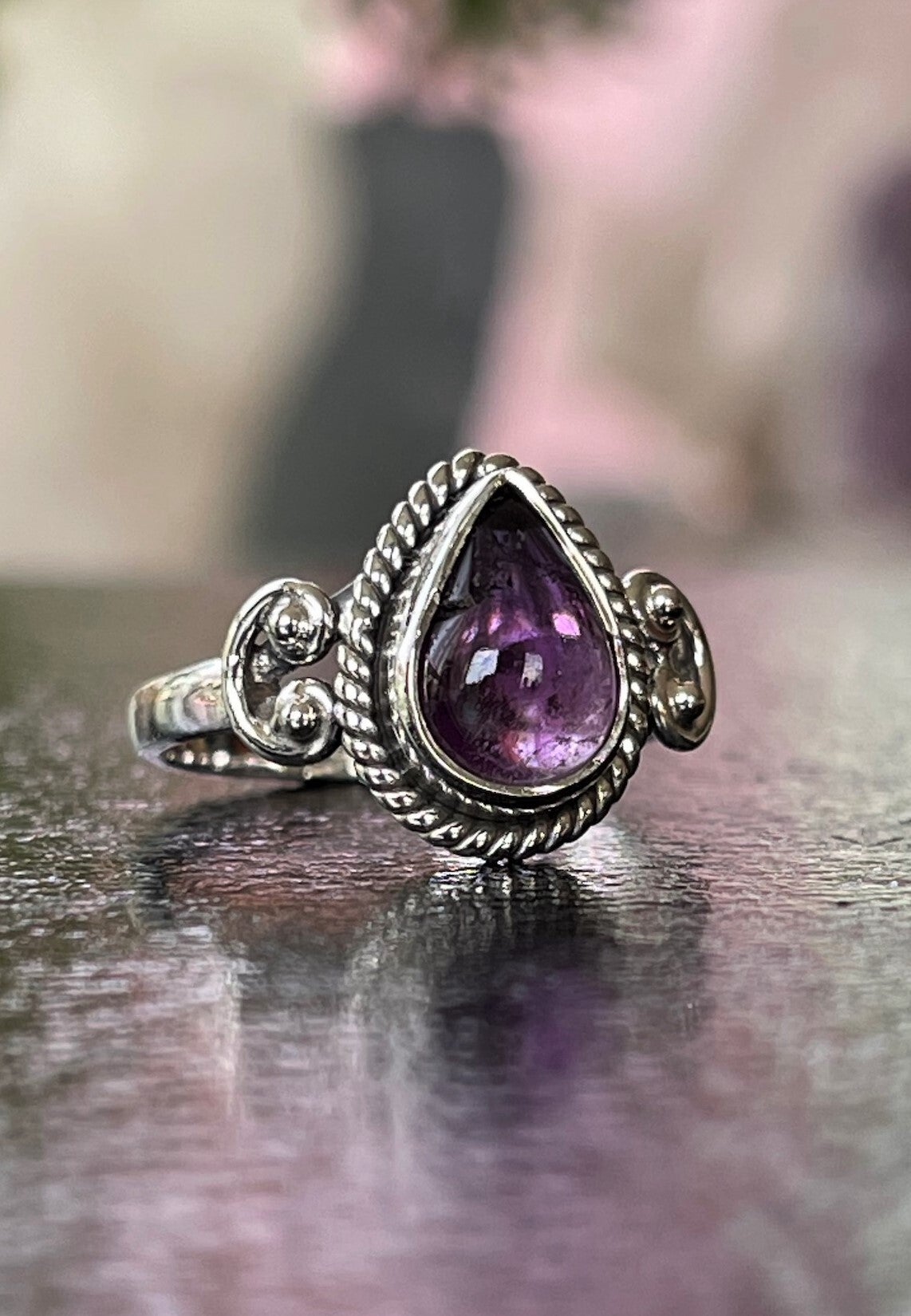 Zilveren ring met Amethist edelsteen cabochon druppel