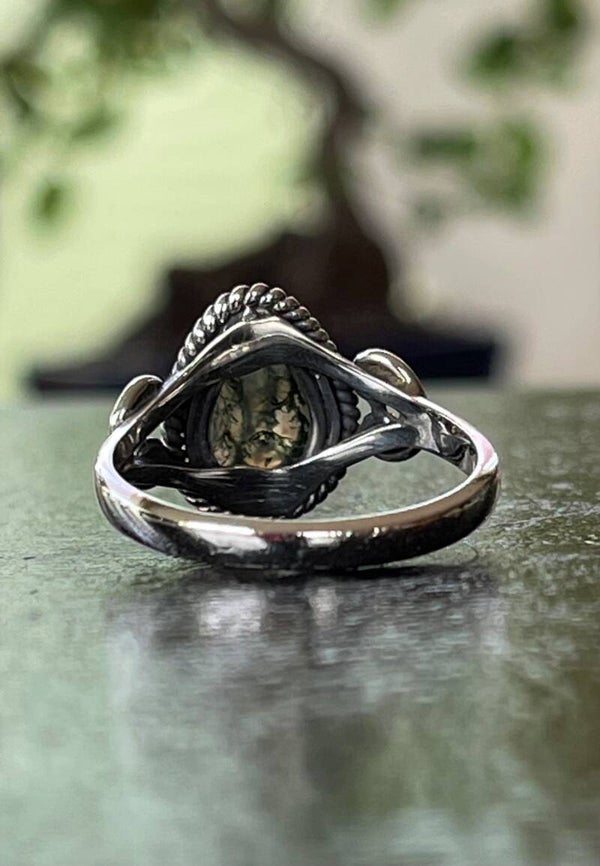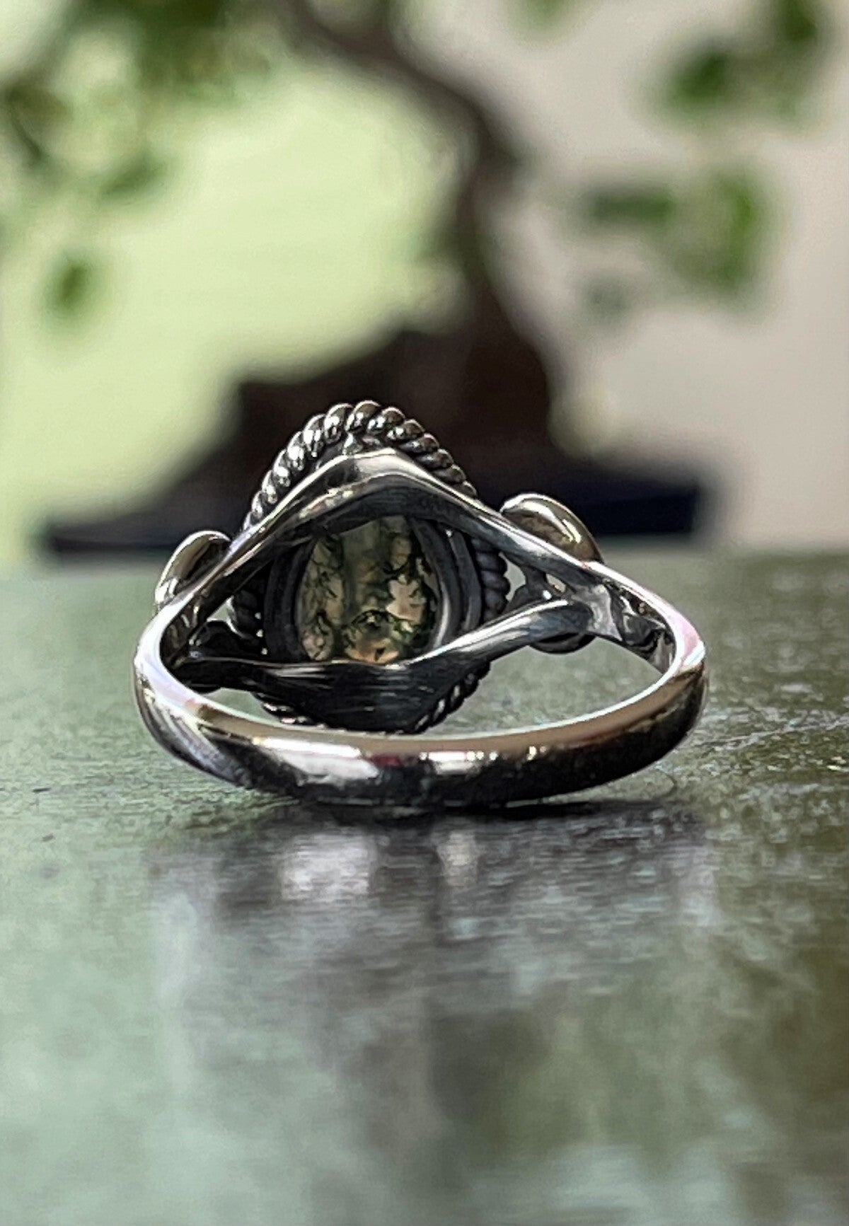Zilveren ring met Mosagaat edelsteen cabochon druppel