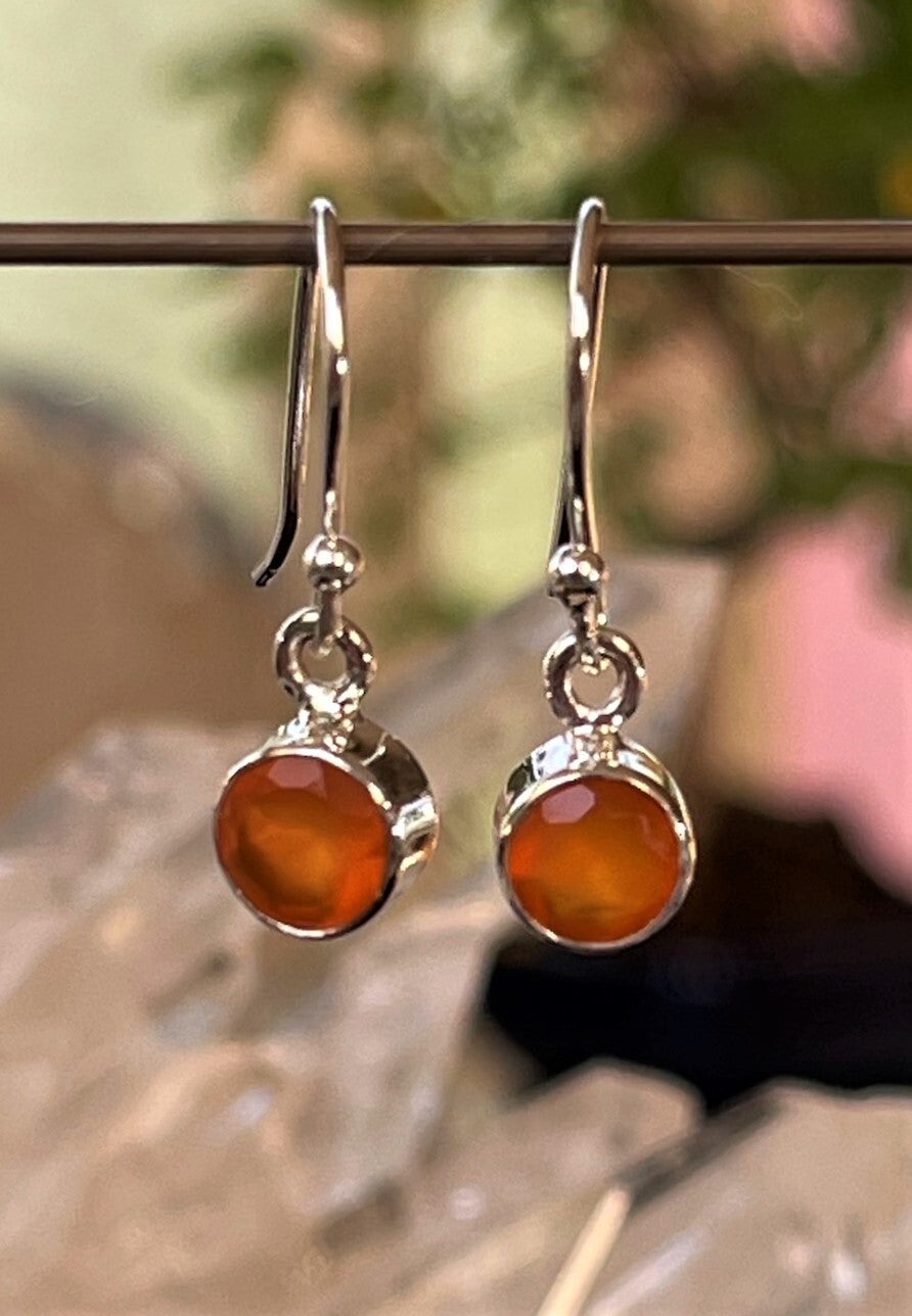 Zilveren oorbellen met Carneool edelstenen facet geslepen rond, klein