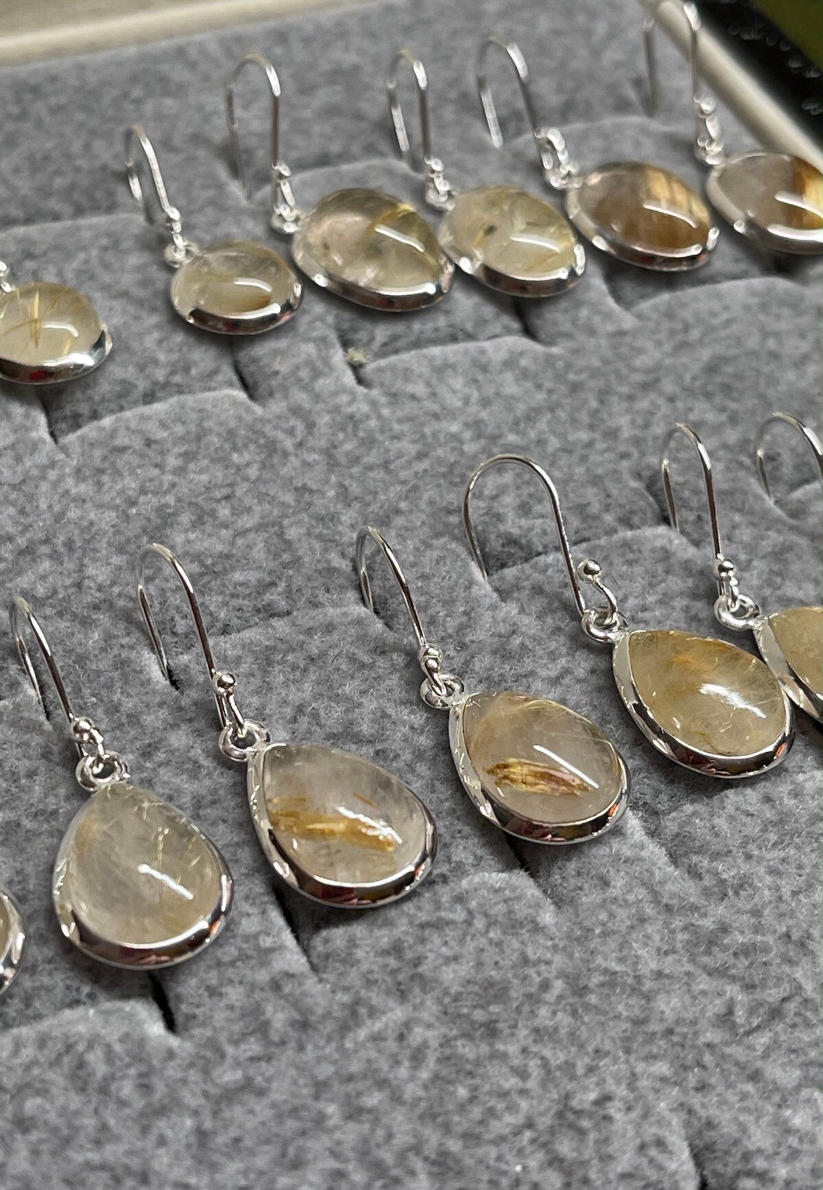 Zilveren oorbellen met Gouden Rutielkwarts edelstenen cabochon ovaal