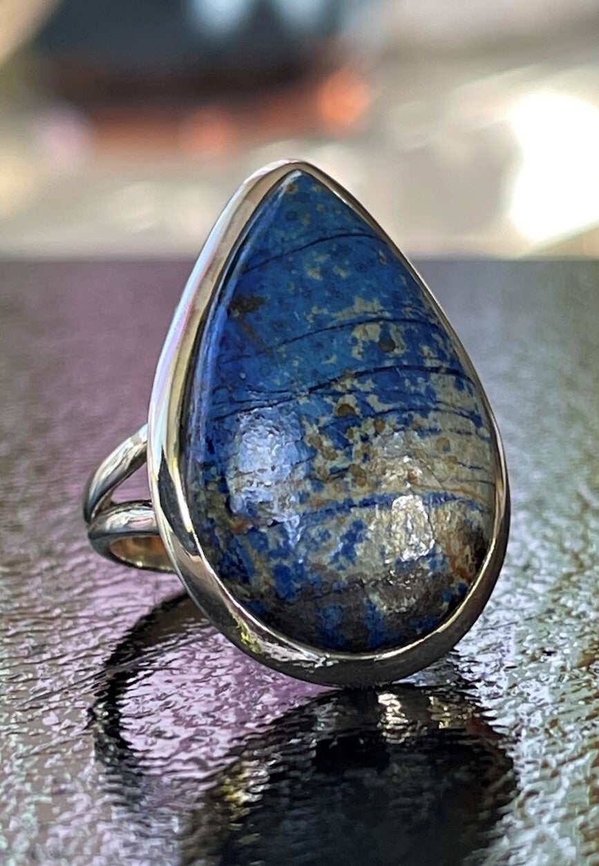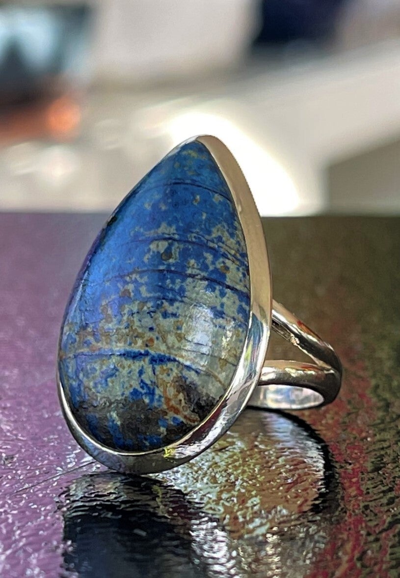 Zilveren ring met Azuriet Malachiet edelsteen cabochon druppel