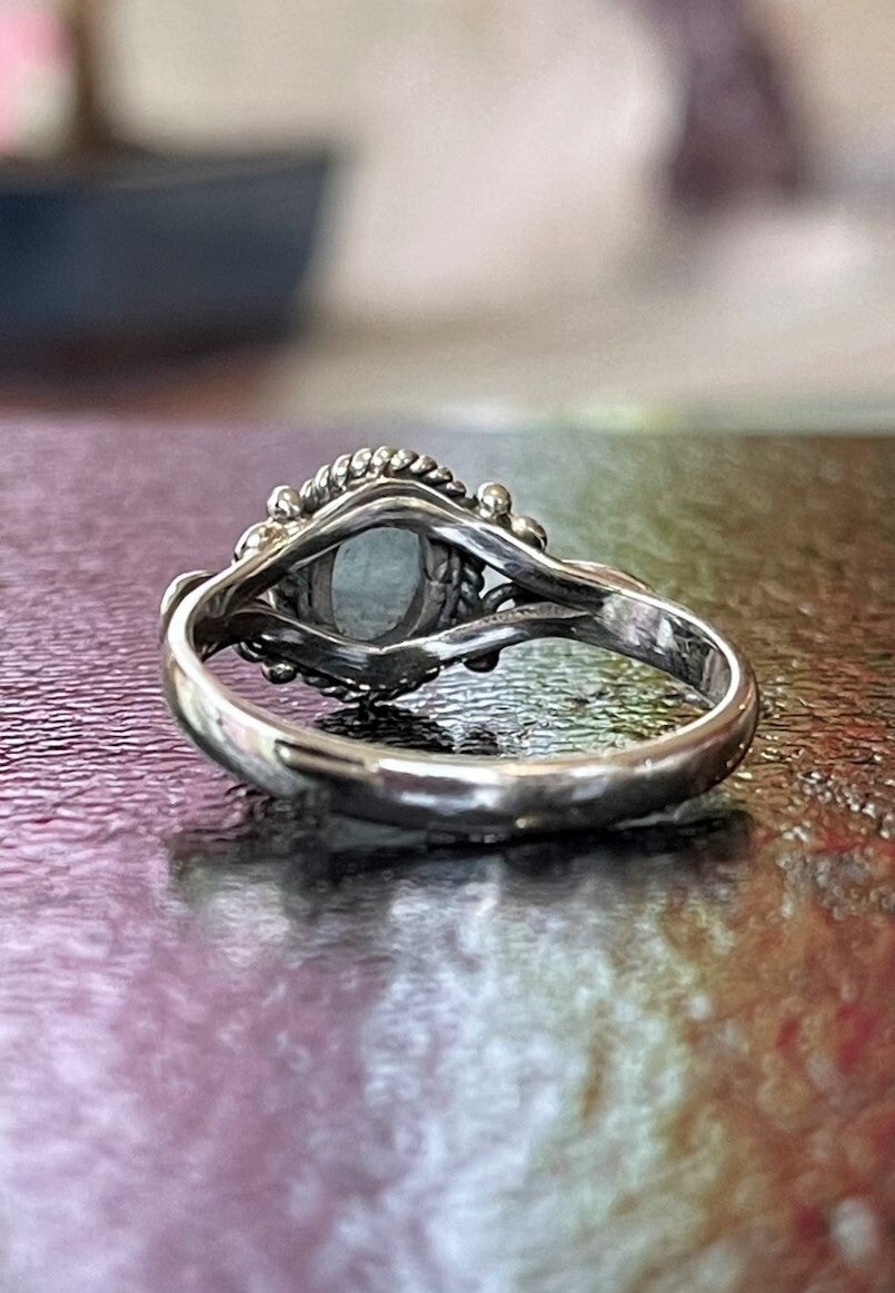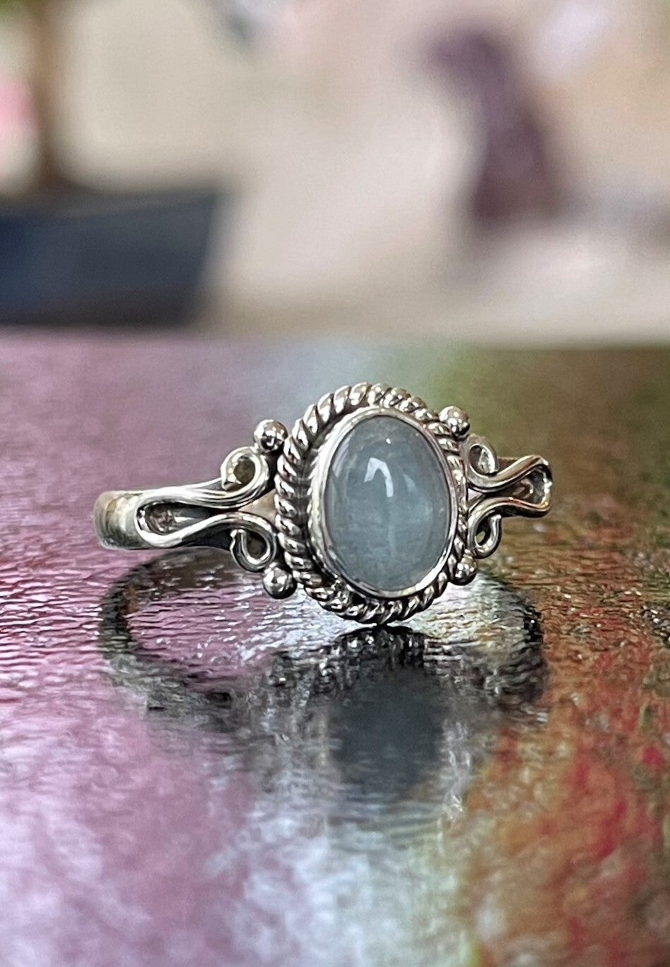 Zilveren ring met Aquamarijn edelsteen cabochon ovaal