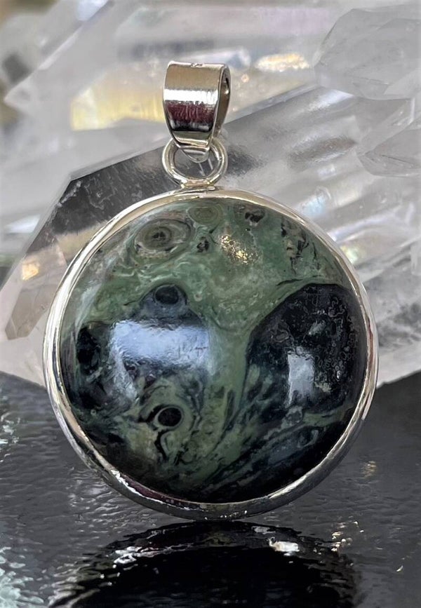 Zilveren hangertje met Kambaba Jaspis edelsteen, cabochon rond, medium