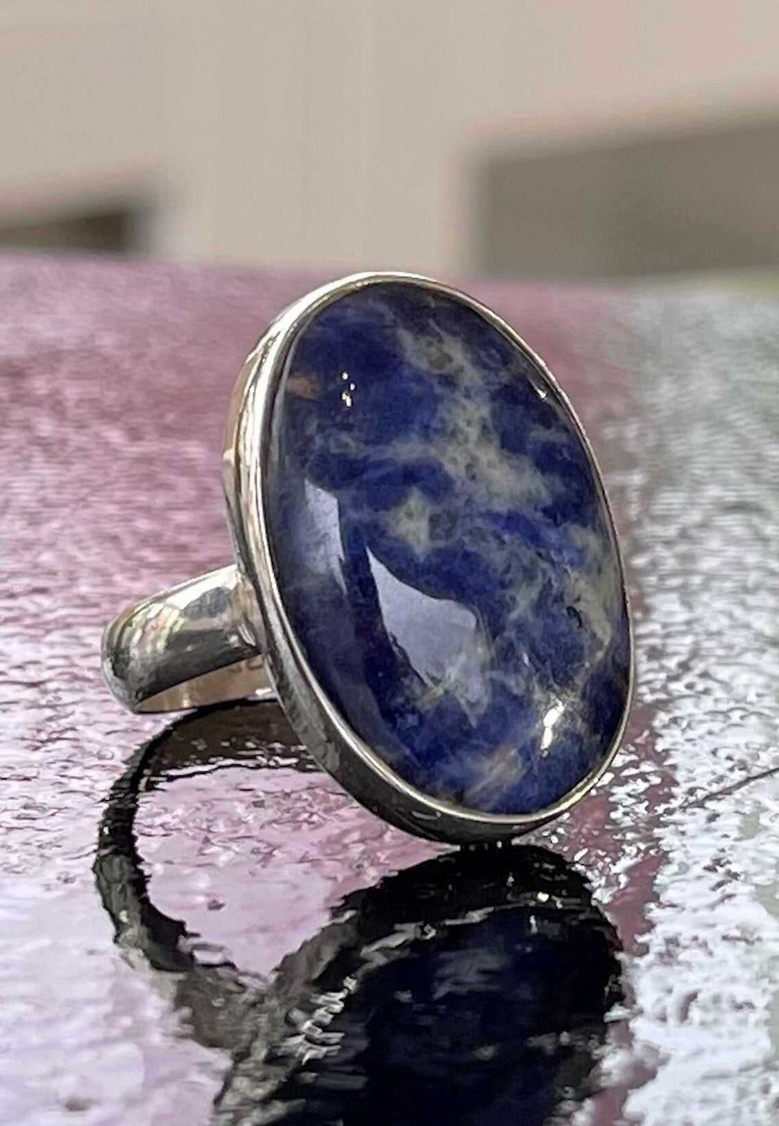 Zilveren ring met Sodaliet edelsteen cabochon ovaal