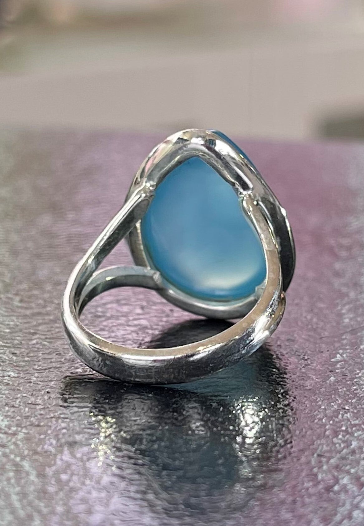 Zilveren ring met Chalcedoon edelsteen cabochon druppel