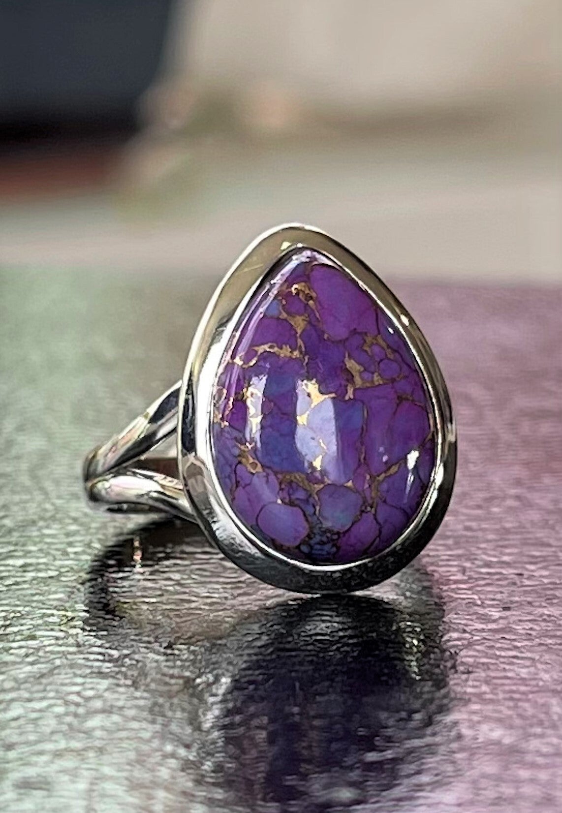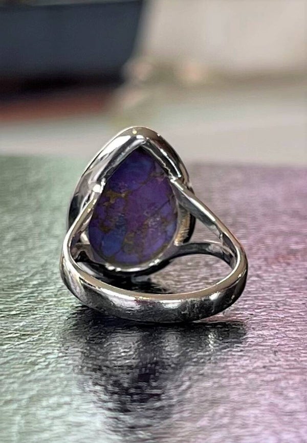Zilveren ring met paarse Koper Turkoois edelsteen cabochon druppel
