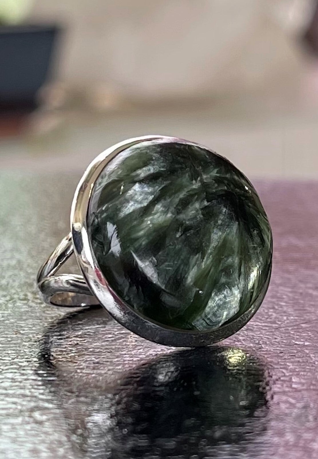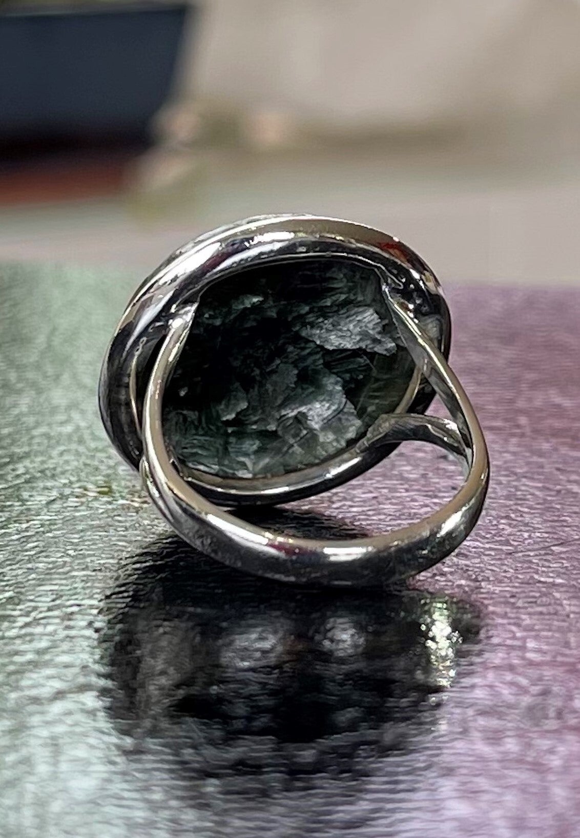 Zilveren ring met Serafiniet edelsteen cabochon rond